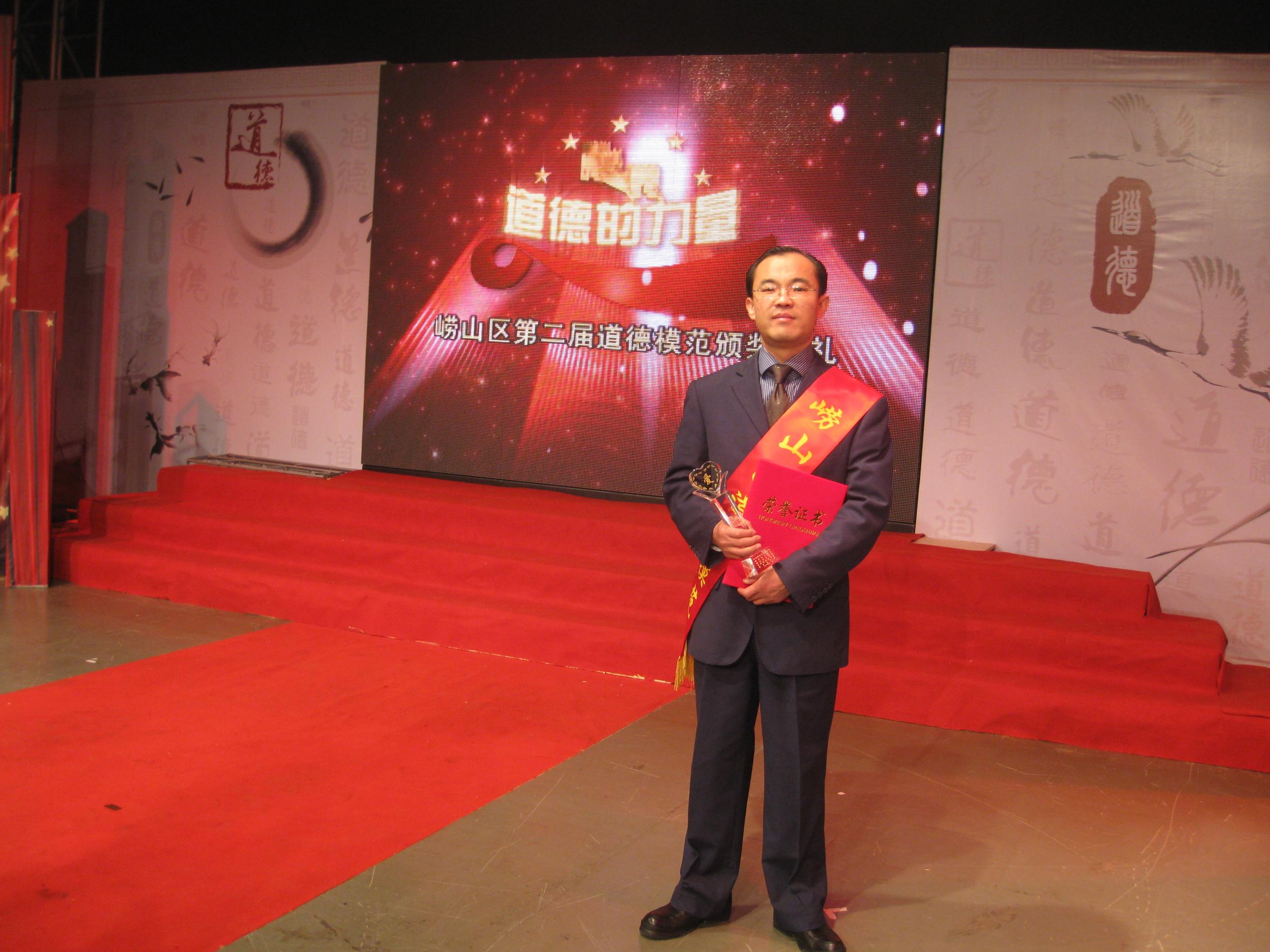他不仅自己有一颗火热而博大的爱心,还如星火燎原一样,把这份炙热的爱和对社会的责任感传递到家人和周边人的血脉里,面向社会广泛撒播,十几年来,他多次参加无偿鲜血和造血干细胞采样,荣获全国无偿鲜血奉献金奖。他不仅自己还感召了家人和三十多位同事登记捐献遗体,并成立了遗体捐献志愿队,他积极参加志愿服务,关心弱势群体,为聋哑学校的孩子募捐;用实际行动诠释最好的爱就是陪伴,陪孤寡老人聊天说话;他以饱满的热情,投身于公益事业,他以无私奉献的精神感染着身边的每一个人,他是一名合格的红十字志愿者,荣获市红十字会人道服务奖,被评为崂山区第二届道德模范。