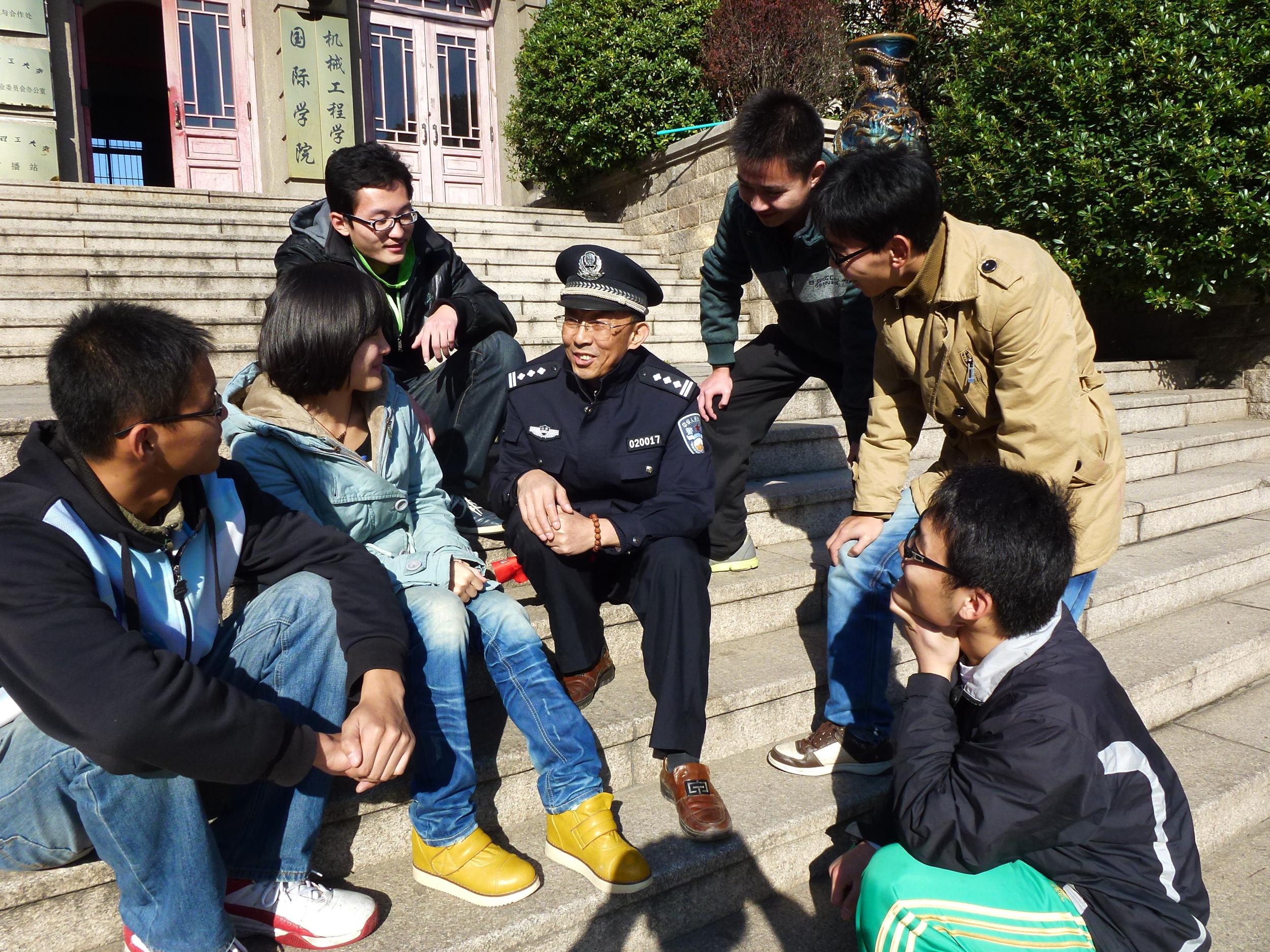 学校无小事,有事找老于。这句话,是青岛理工大学驻校民警于振梁的QQ签名。两年前才学会电脑操作的于振梁,在QQ上经常和学生们聊天,鼓励学生们好好学习,提醒学生们注意安全,还发动学生组织义务巡逻队,和他一起维护学校的治安。