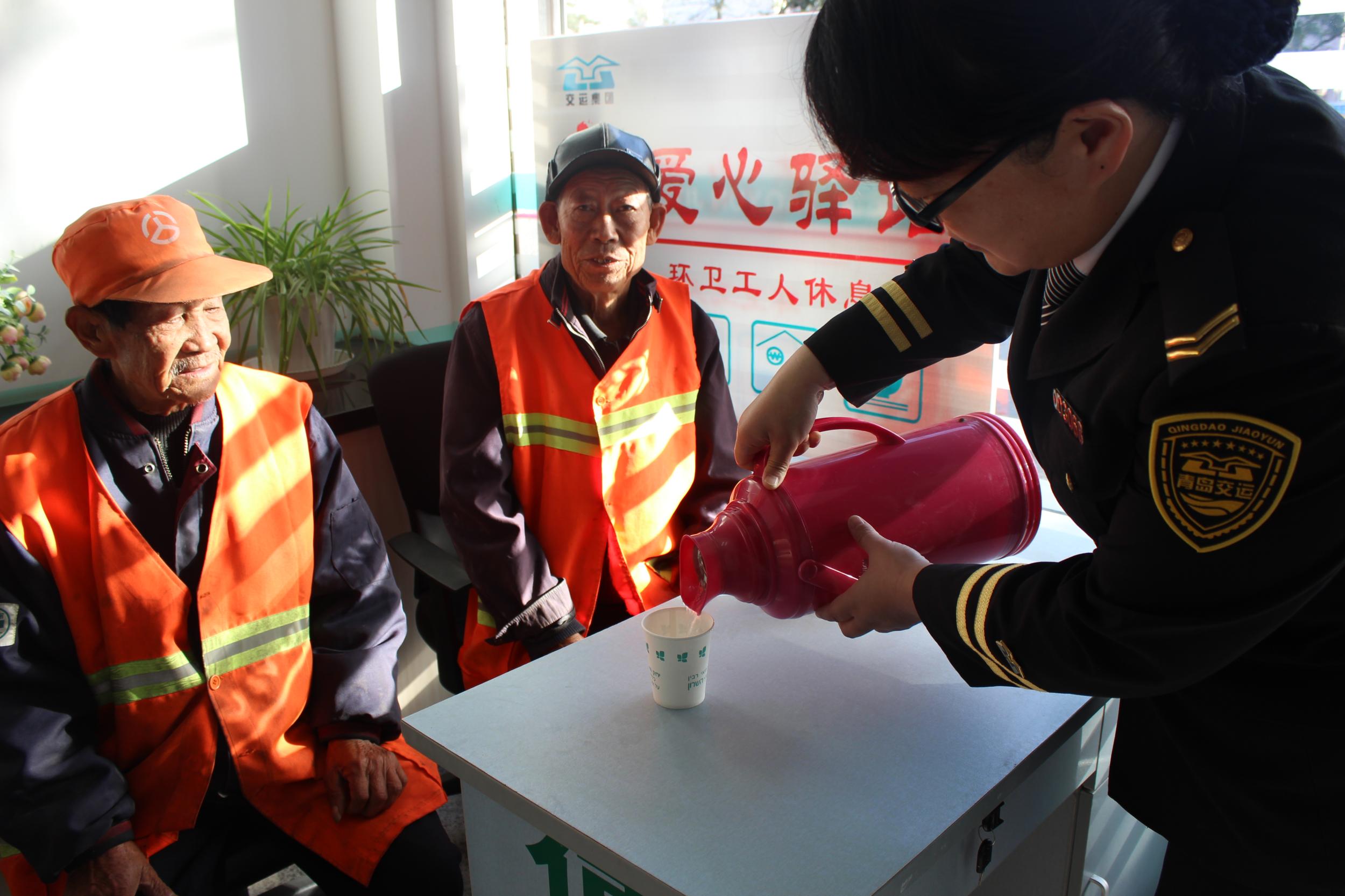 交运爱心驿站志愿服务队,起源于温馨巴士公司601路队调度员薛峰的善举。他每天早晨为单位附近的环卫大姐送去一杯热水,请进来热一顿早饭。交运集团在宣传薛峰爱心善举的同时,向全集团发出倡议,在辖属公交场站、长途车站和临街单位等有条件可以开放的经营、服务场所设立面向周边环卫工人的爱心驿站,为环卫工人配备了座椅、暖水壶、微波炉、电饭锅、电风扇等生活设施,从职工中挑选志愿者者,常年在爱心驿站轮流值班,义务为周边的82名环卫工人提供消暑避寒、饮水蒸饭等爱心服务,从今年10月起,每天向早班环卫工人提供免费早餐,志愿者还主动帮环卫工人清扫周边卫生,向广大市民宣传环保知识等……用实际行动,关爱他人,感召蕴藏在社会中的积极向善力量,为祖国大家庭奉献温暖。