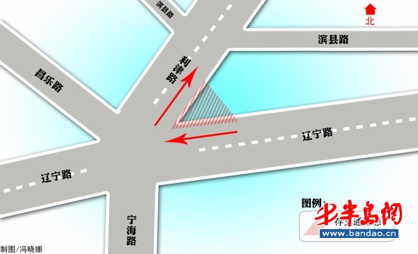 ▲利津路辽宁路路口交通现状及改进建议示意图。