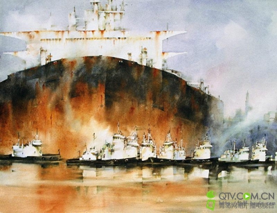 高东方,一个浑身充满海味儿青岛人,现任青岛科技大学艺术学院教授,一直从事色彩的教学工作。他的作品水韵人文气息浓重,讲求水彩独有的笔法和表现方式,看他的作品仿佛会被满眼流淌的颜色所融化。“初中毕业以后,我就被分配到了北海船厂,那里是我起步的地方。”16岁被分配到船厂做工人,这并没有打断他绘画的梦想,在这个满是船舶的地方,他找了属于自己的天地,进入船厂画那些破旧生锈的船成了他最为喜爱的事情。码头上画海画船的经历,成了他第一次全国参加全国美展的主题。