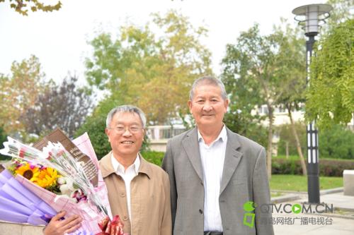 在校园中遇到一位捧花的老先生,记者想要给他拍张照片,他却把花递给旁边的老人,“这位是17中的老师,你给他拍吧。”言语中仍是对老师的敬意。