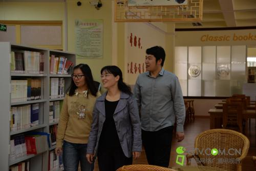 05届毕业生梁瑛、迟大卫和老师一起参观图书馆。他们的同学早前不幸罹患癌症,得知消息后,他们首先行动起来,为老同学发起捐赠,并获得了老校友以及各方的支持与关注。