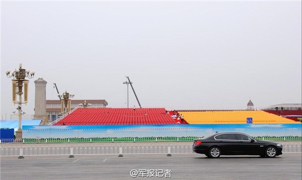 纪念抗战胜利70周年 天安门阅兵观礼台渐露“真容”