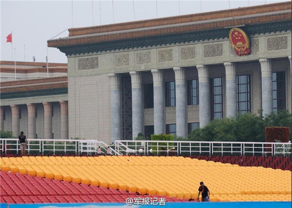纪念抗战胜利70周年 天安门阅兵观礼台渐露“真容”