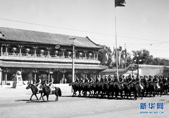 这是1952年国庆阅兵式上,中国人民解放军骑兵部队经过新华门。