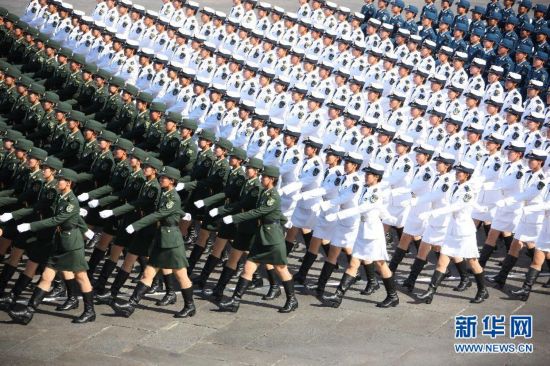 这是2009年国庆阅兵式上,女兵方队通过天安门广场。