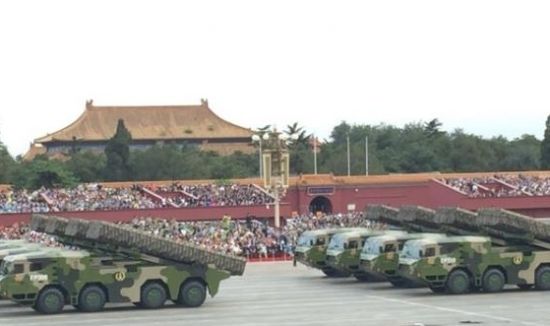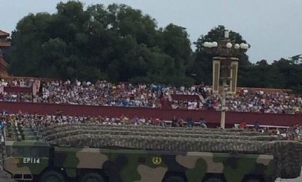 (19)东风26弹道导弹方队由16辆东风26弹道导弹发射车组成