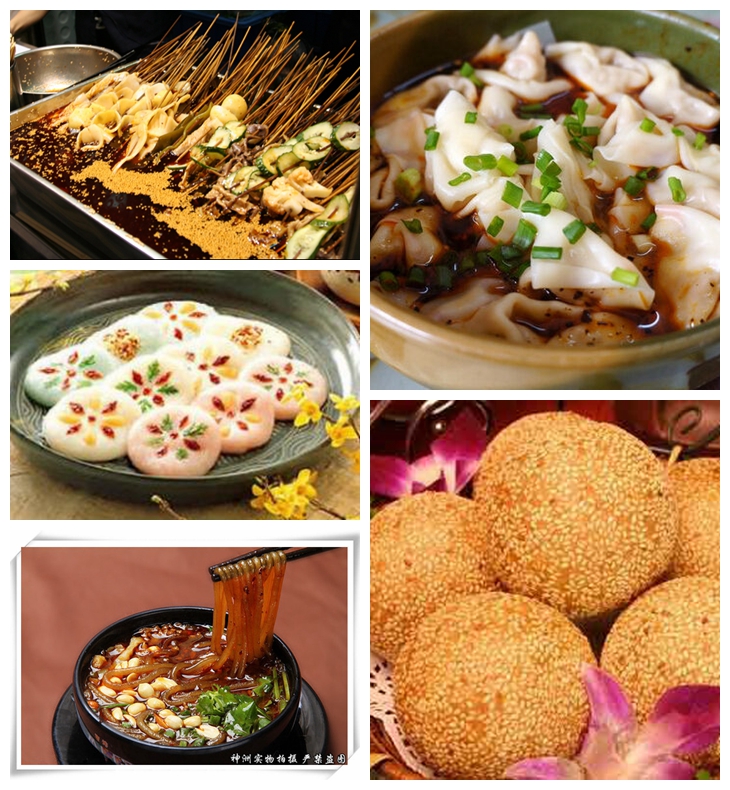 成都风味独特、品类繁多的小吃,与其肴馔一样脍炙人口。从各色小面到抄手、饺子,从腌卤到凉拌冷食,从锅煎蜜饯到糕点汤元,从蒸煮烘烤到油酥油炸,琳琅满目,各味俱全,种类不下200种。