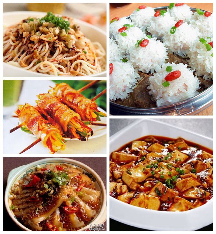 代表美食:担担面、钟水饺、三大炮、夫妻肺片、棒棒鸡、龙抄手、陈麻婆豆腐、三合泥、冷锅串串香、二姐兔丁等。