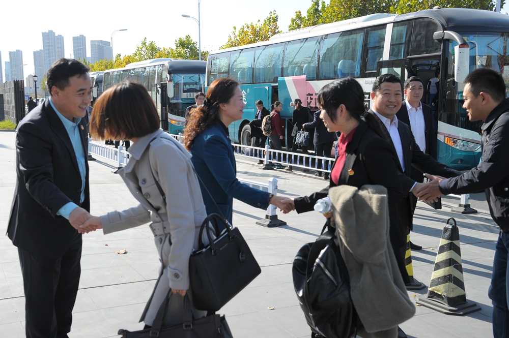 书记们迎接大会代表团
