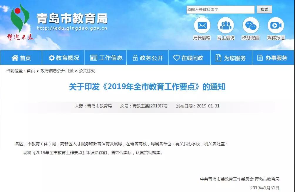 1月31日,青岛市教育局发布《2019年全市教育工作要点》,其中,提到推动高中教育多样化特色发展。