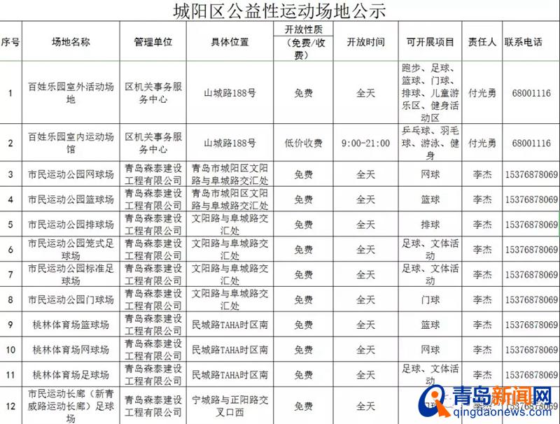 近日,城阳区公示了119处公益性运动场地,这些场地绝大多数为免费开放,可供市民健身使用。