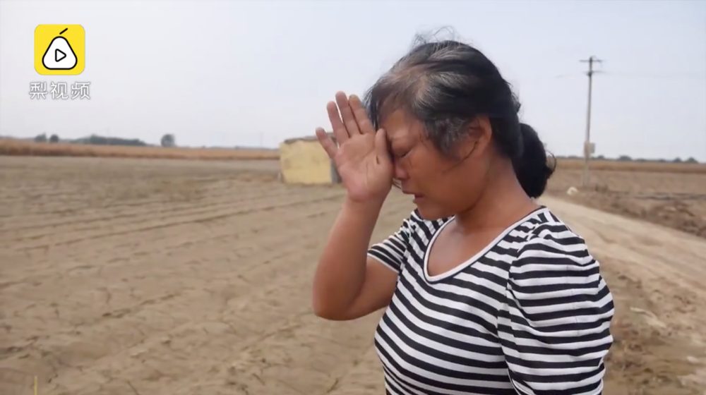 2018年8月,寿光市口子村村民吴保莲因菜地被淹在田间痛哭失声