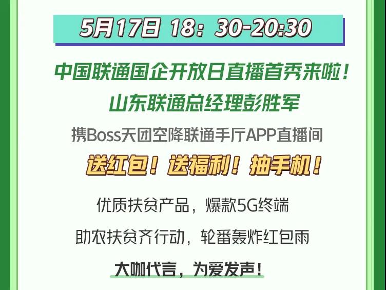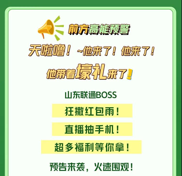 山东联通BOSS天团直播送福利 撒红包抽手机 千万别错过!