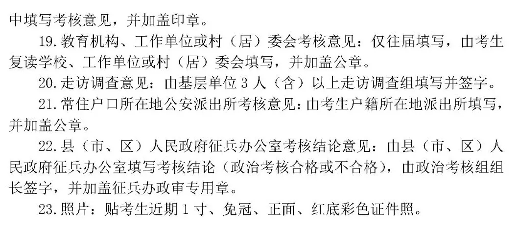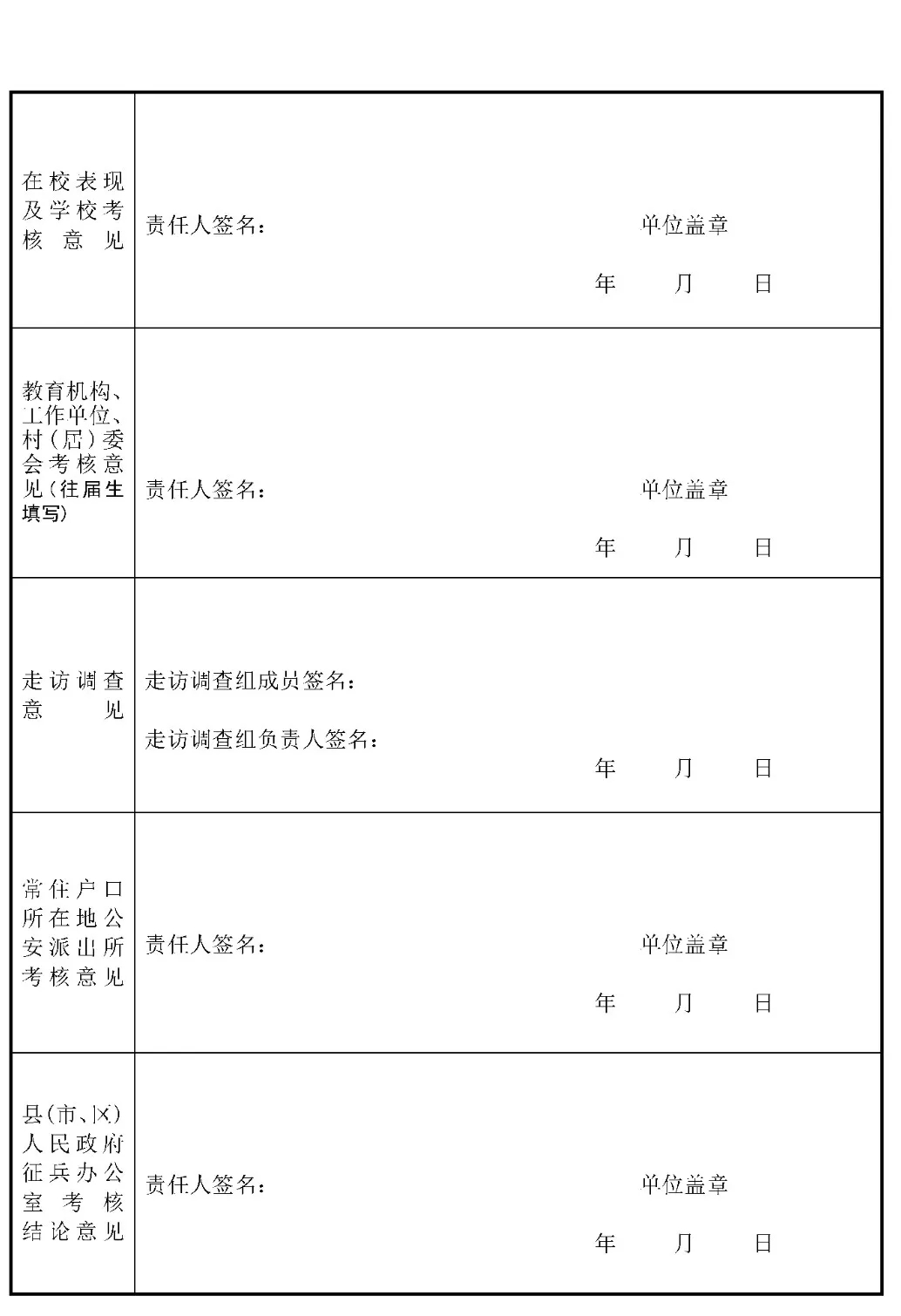 3、考生户口所在地的乡(镇、街道)人武部和村(居)委会签署意见。
