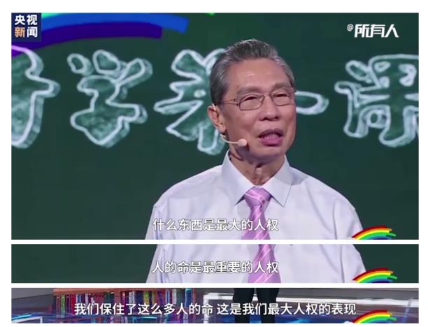 正如钟南山院士说的那样,武汉1月23日关闭了离汉通道,这座英雄的城市经历了整整76天1814个小时的封锁,换来了让中国至少减少感染70万人,这就是我们的国家,首先抓住人的生命是第一宝贵的。人的生命是最重要的人权!我们保住了这么多人的命,这就是我们最大人权的表现。