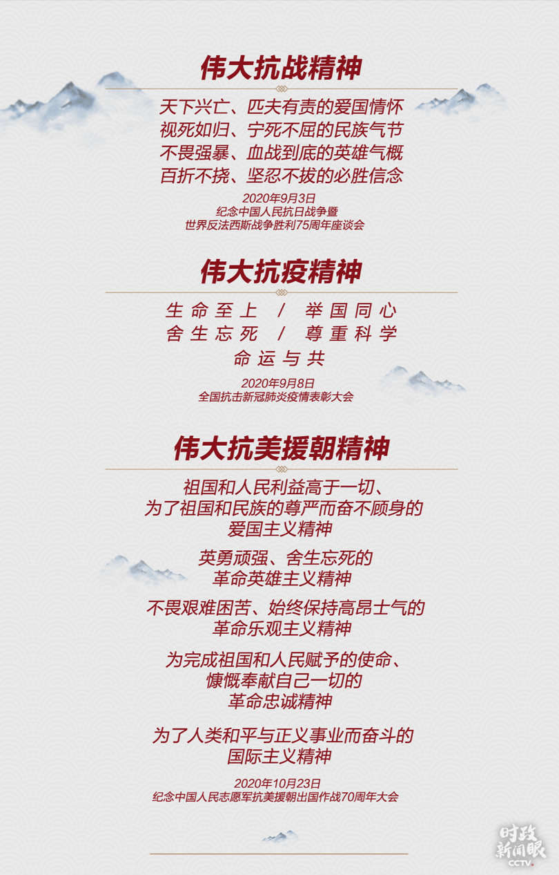 在当天的纪念大会上,习近平还深刻阐述了抗美援朝精神。他说:“伟大抗美援朝精神跨越时空、历久弥新,必须永续传承、世代发扬。”这也是总书记在一个多月时间里连续第三次阐述伟大精神。