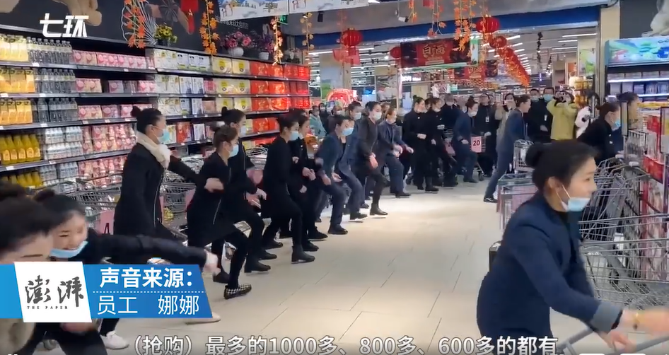 这段员工抢购的视频,在网上引发了广泛的传播。视频中,员工站成一排,一声令下之后向货架发起冲刺,场面十分热闹。评论区的“画风”也相当有趣,比如很多网友称,“超市为最大赢家”,还有网友打趣道,“抱薯片的一定是没结婚的小姑娘”。