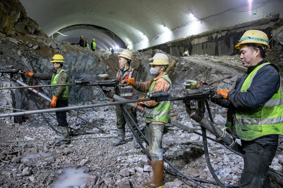 为确保施工对周边环境、居民影响降至最低,项目工程技术人员依据设计图纸、周边环境制定了详细的爆破专项方案、开挖支护安全专项施工方案及专项应急预案。采用水压爆破施工新工艺及“云爆破”作业系统,洞内设置消声减震隔音门,场区外设置全封闭大棚,有效控制爆破振速,减少粉尘及噪声污染。