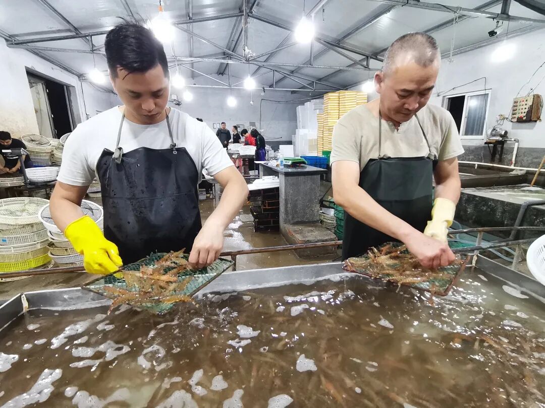 “由于日本对虾昼伏夜出的生活习性,所以捕捞、交易一般都在晚上进行。”虾农介绍, 养殖户每天傍晚开始捕捞,赶在凌晨1点左右运到鳌山卫进行交易。鲜虾随后被转运到全国各地市场。