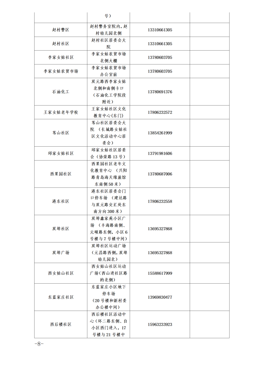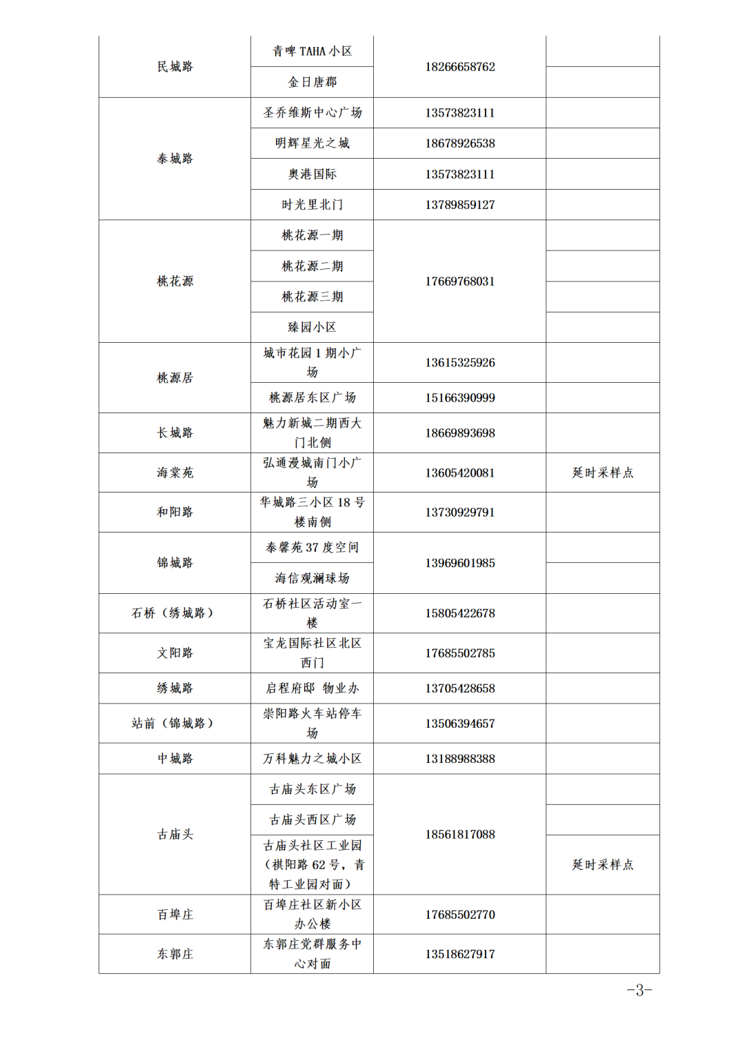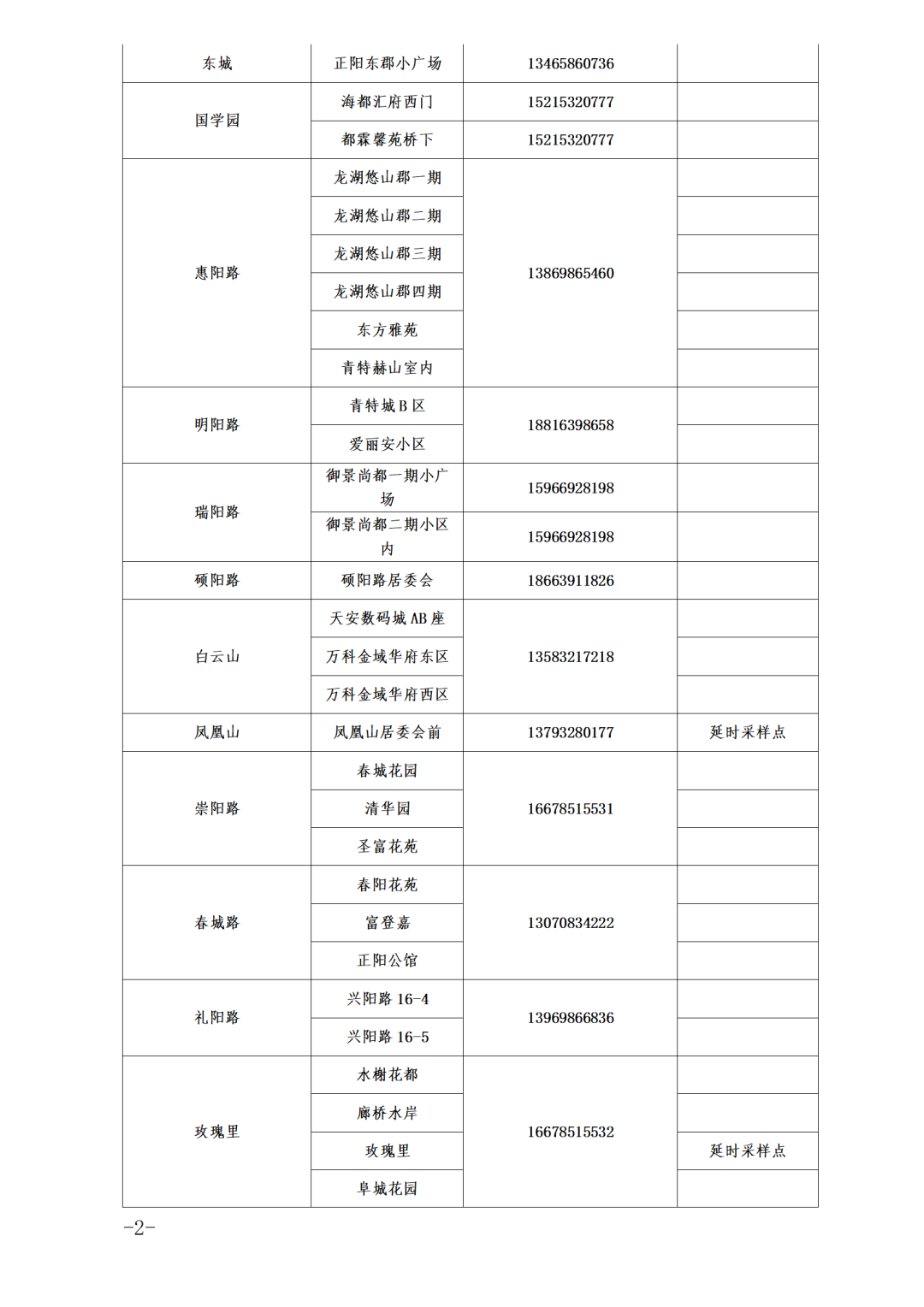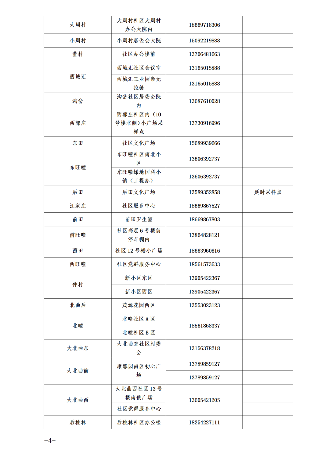 各街道、高新区防指办、高新便民服务中心就近设置采样点(采样点信息附后),请关注区及各街道、高新区防指办、高新便民服务中心发布的信息。