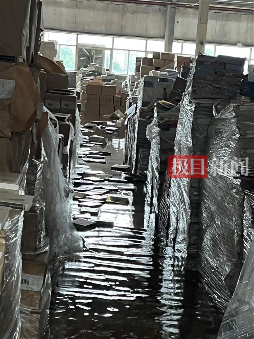 而与西南物流中心一墙之隔的主做馆配的北京天问求索文化发展有限公司库房,库房整个被淹,其负责人袁女士称损失上亿。其负责人称:“库房全淹了,什么都不剩了。”