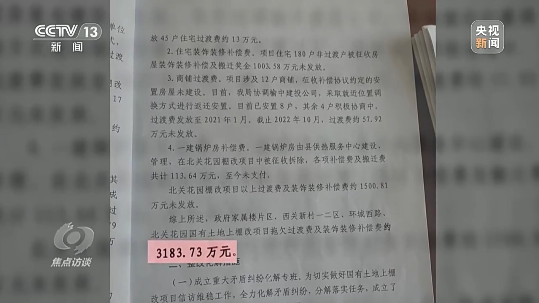 根据当地住建局统计,榆中县仅国有土地上的安置房项目拖欠群众的安置过渡费等就有3000多万元,榆中建投公司这个时候却拿不出钱来。