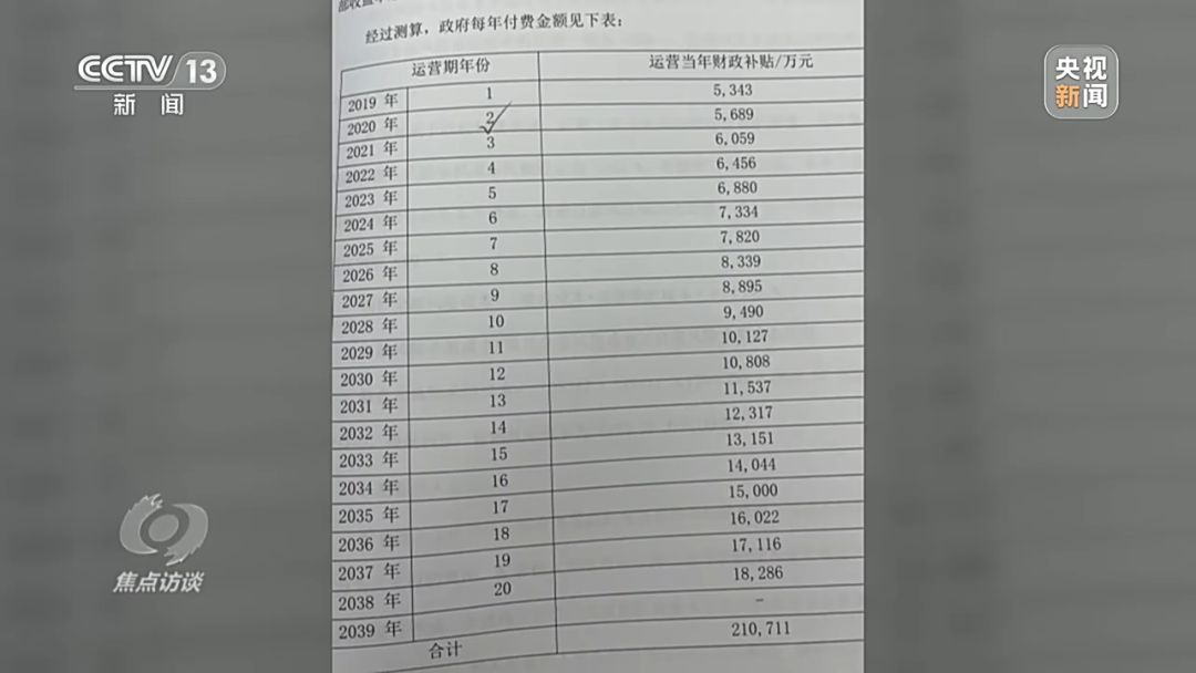 除了运营费用,当地政府每年还要向建设方支付建设成本。按照当地政府提供的付款方案,计划在投入运营的第一年,榆中县政府就要支付5000多万元的费用,随后费用逐年增加,到后期最多时每年要支付1.8亿元,总共要支付21亿元。