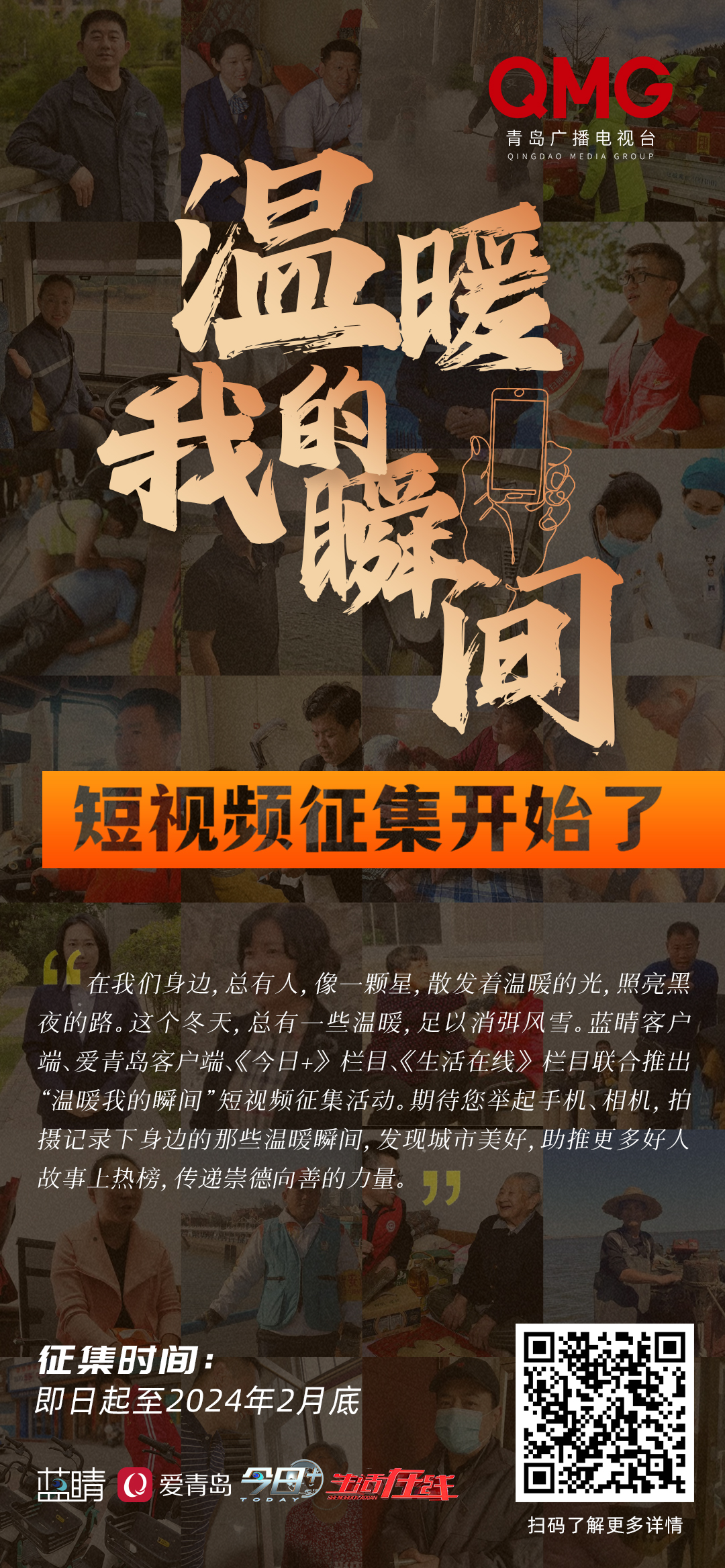 这个冬天,总有一些温暖,足以消弭风雪。蓝睛客户端、爱青岛客户端、《今日+》栏目、《生活在线》栏目联合推出“温暖我的瞬间”短视频征集活动。期待您举起手机、相机,拍摄记录下身边的那些温暖时刻。我们将通过新闻报道、网络传播的方式,挖掘镜头背后的故事,助推更多好人故事上热榜,传递崇德向善的力量。