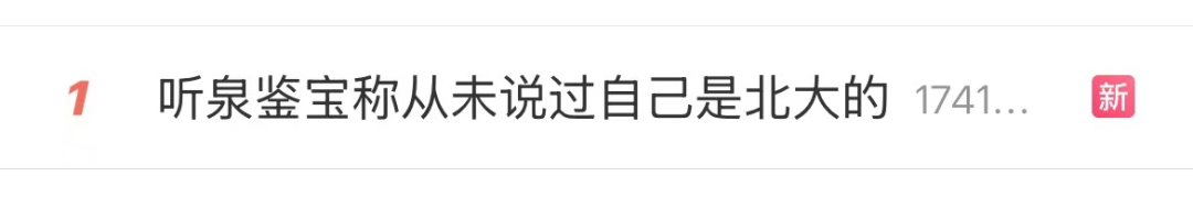 此外,在“听泉鉴宝”的一次直播中,有网友询问其是否为北大毕业。“听泉鉴宝”回应:“互联网很多身份都是网友给的,网友让咱们成为什么样的人,就会成为什么样的人,这个不重要。”