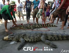 水浸泰国曼谷 灾民洪水中捕到大鳄鱼