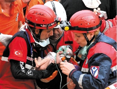 土耳其一两周大婴儿地震被埋48小时后获救(图)