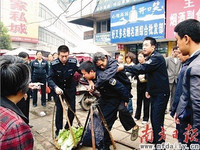 城管急救晕厥老菜农遭质疑 网友称像拍电影(图)