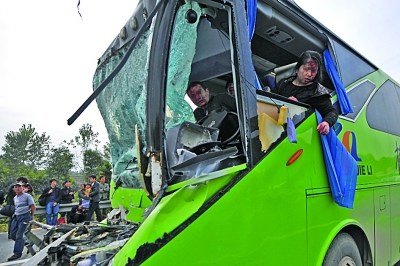 南京高速大巴与货车相撞 10人受重伤(图)