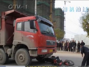 大货车和摩托相撞 摩托司机头部被压扁