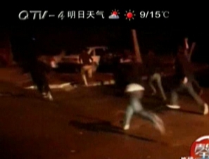小伙街头揍人上演全武行 警察鸣枪示警