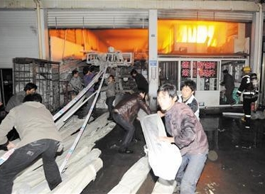 长沙路型材市场火烧连营 20间商铺被毁