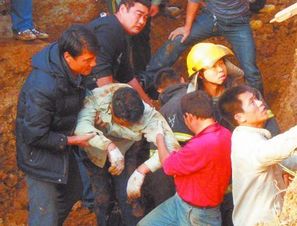 工地塌方两工人被埋 民警听音辨位挖土救人