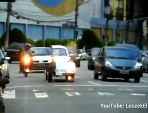 波兰惊现“被劈一半车” 马路上穿梭自如