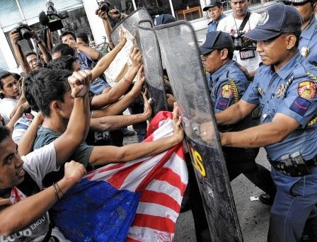 希拉里出访菲律宾车队遭泼漆 被迫绕行