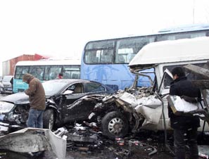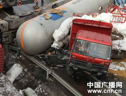 甘肃定西柳高速积雪致6车相撞 致3人受伤