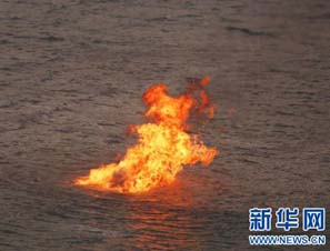 中海油珠海天然气泄漏 海面点燃天然气