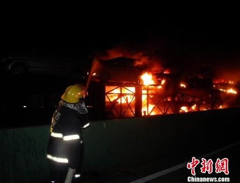 广西高速路大型拖车自燃 烧毁13辆小车