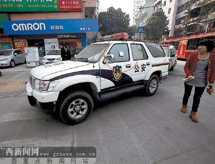 南宁一警车违章停放被“贴条”引市民围观