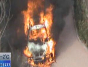 吉普车莫名自燃 发生多次爆炸
