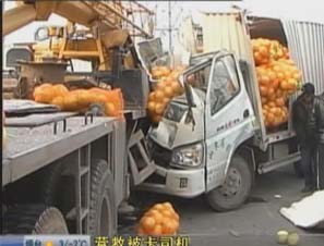 货车吊车相撞 吊车司机满脸是血腿部被卡