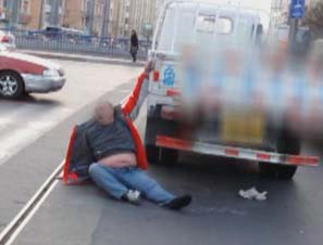 醉汉当街耍酒疯:俩醉汉倒向货车 吓跑司机