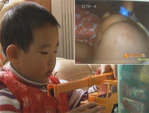 老师动怒打孩子 5岁幼儿屁股红肿