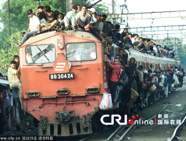 印尼为防乘客爬火车顶 铁轨上空挂水泥球